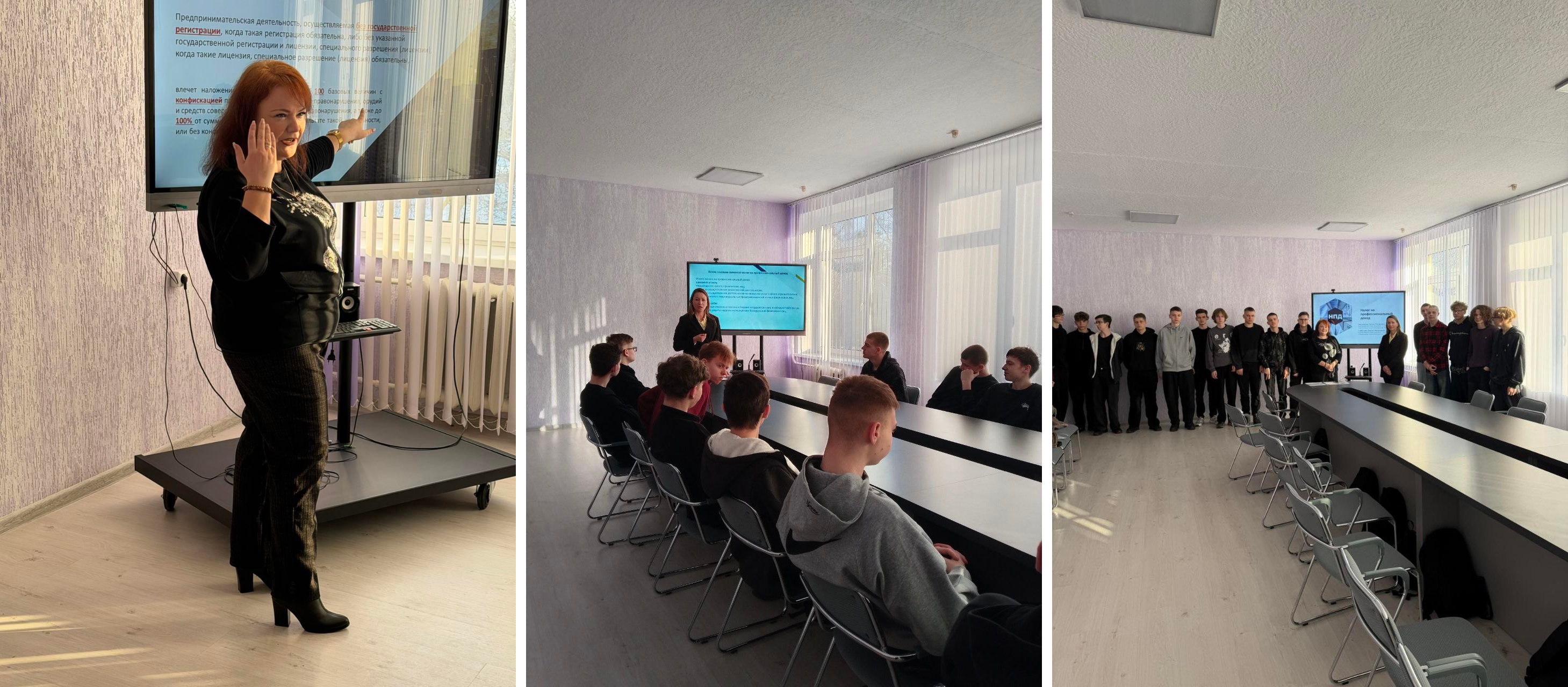 Консультанты очень подробно рассказали учащимся о необходимости осуществлять деятельность в правовом поле, а также о преимуществах применения налога на профессиональный доход.