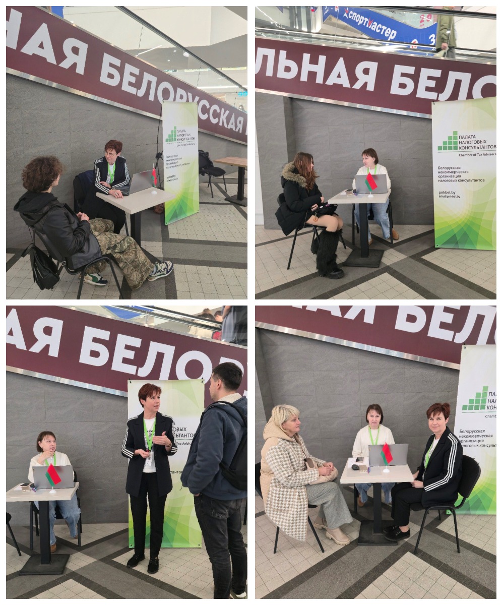 В этот же день в г. Гродно налоговые консультанты Светлана Белко, Лариса Гавранин, Наталья Доукша и Ирина Остапченя в торгово-развлекательном центре «Тринити» провели бесплатную акцию по разъяснению порядка исчисления имущественных налогов и уплаты единого налогового платежа, получения льгот по подоходному налогу с физических лиц, налогообложения операций с токенами и др.