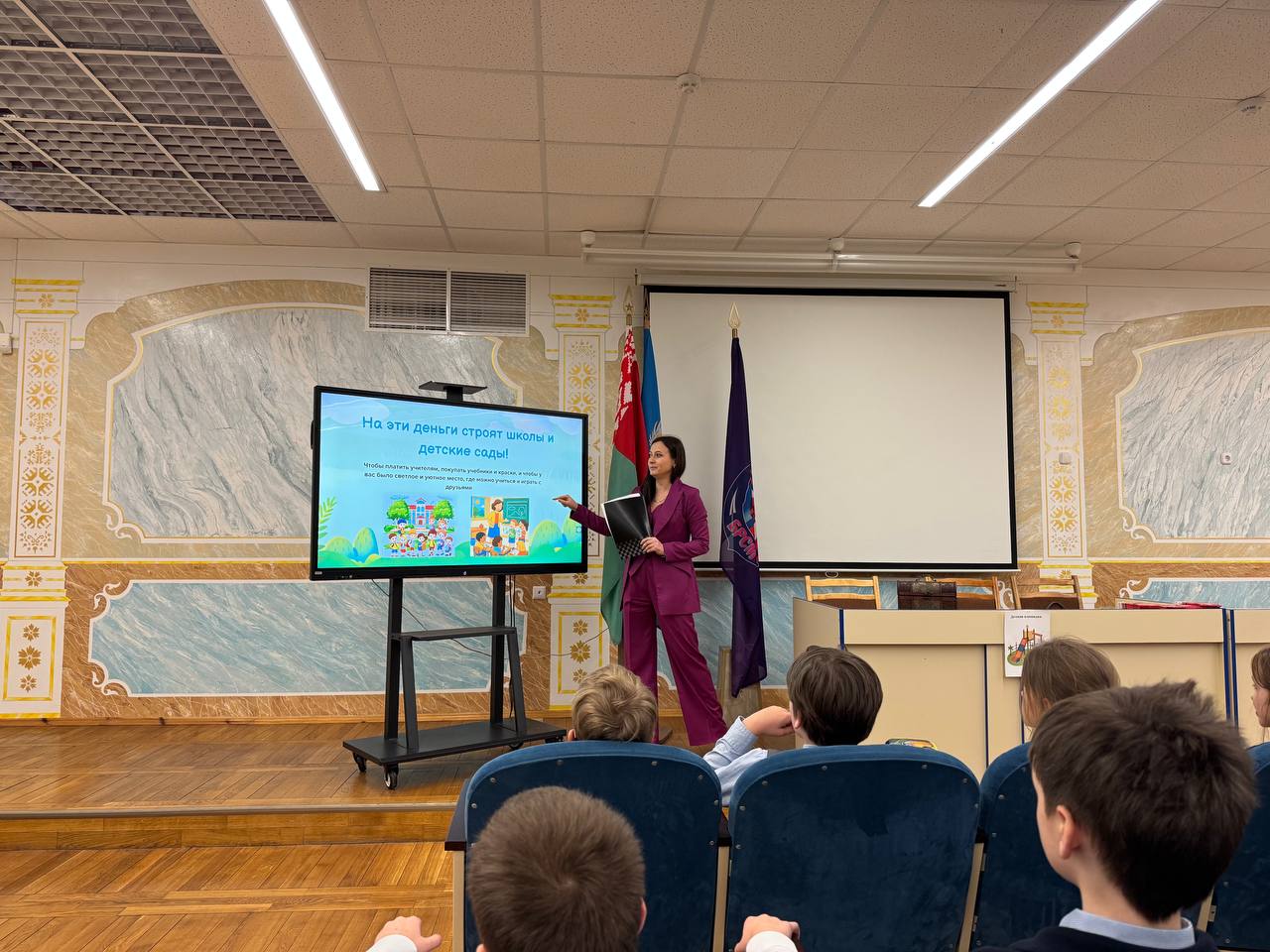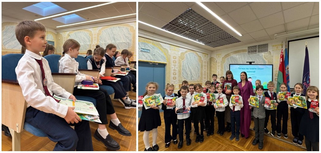 12 декабря 2025 г. в ГУО «Средняя школа № 32 г. Минска» у учеников 2 «Д» класса прошёл урок на тему «Что такое налоги», который провела налоговый консультант Вероника Бузук.