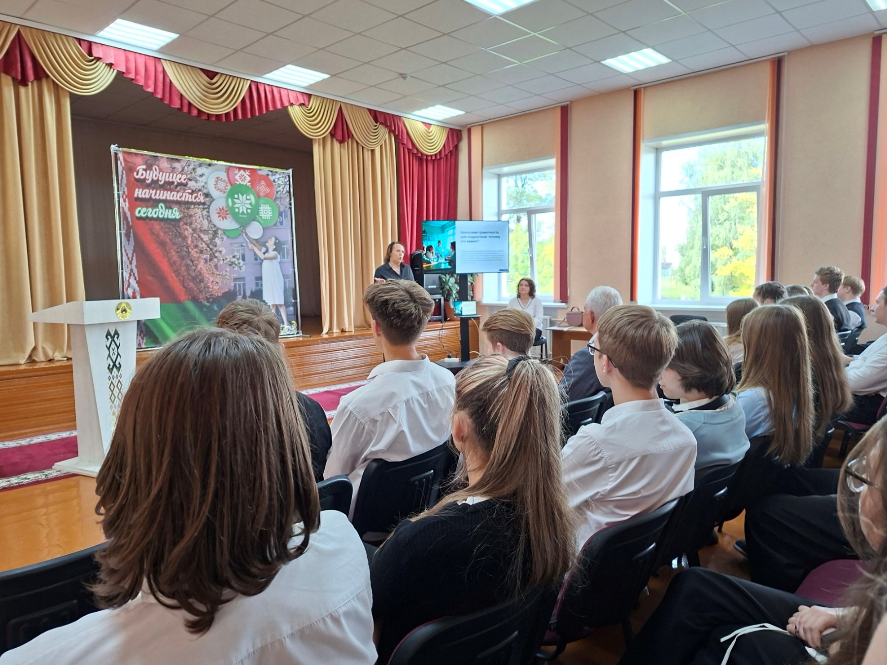9 сентября 2025 г. налоговые консультанты Вера Бакшинова и Ольга Рыжанкова совместно с заместителем начальника управления — начальником отдела налогообложения имущества физических лиц инспекции Министерства по налогам и сборам по Слонимскому району Тарановичем Юрием Юрьевичем провели встречу с учащимися 10–11-х классов средней школы № 5 г. Слонима по вопросам налоговой грамотности.