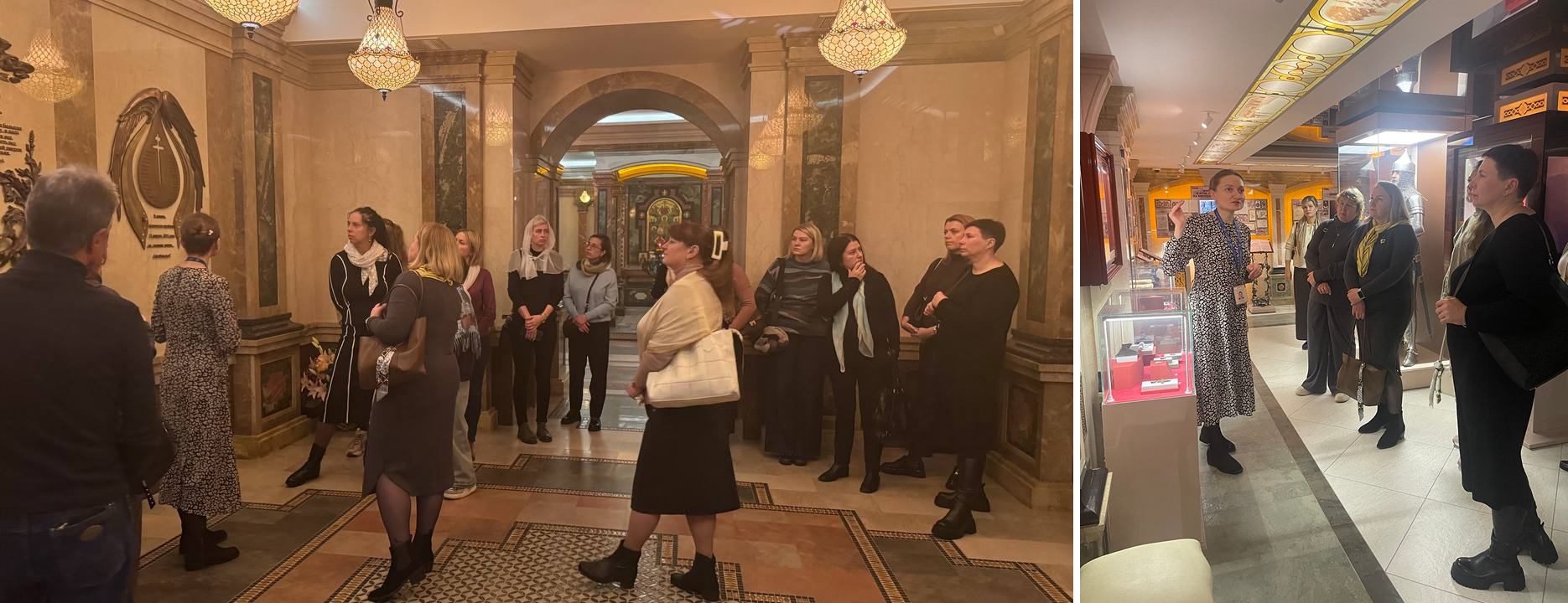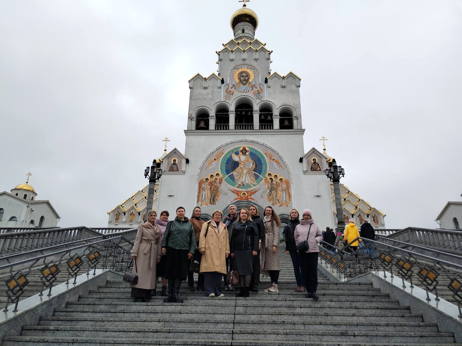 Завершилась экскурсия посещением самого Храма-памятника в честь Всех Святых, основной концепцией которого является прославление известных и неизвестных святых народа через посвящение храма всем святым и всенародная молитвенная память о павших воинах, защитниках Отечества, жертвах войн, о невинных жертвах времён лихолетья, а также о погибших в техногенных, природных и рукотворных катастрофах.